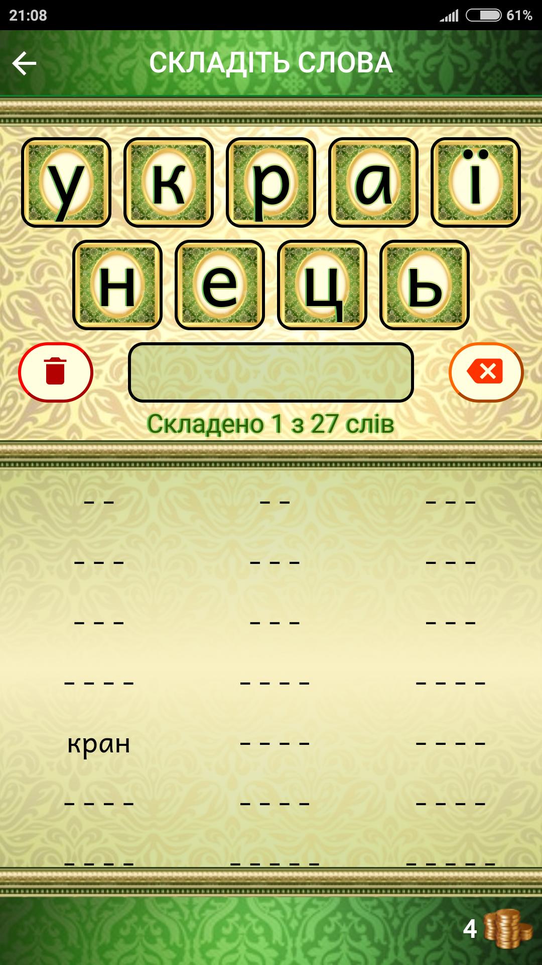 Você deve compor palavras de uma determinada palavra (no ucraniano)